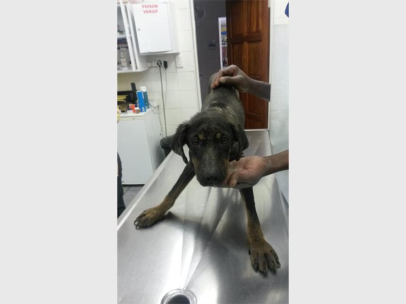 Neveah was rescued off a highway close to Lenasia. She was covered in mange and ticks and it was discovered that she had been living off rubbish. Neveah has now recovered physically but is still being treated for behavioural issues.