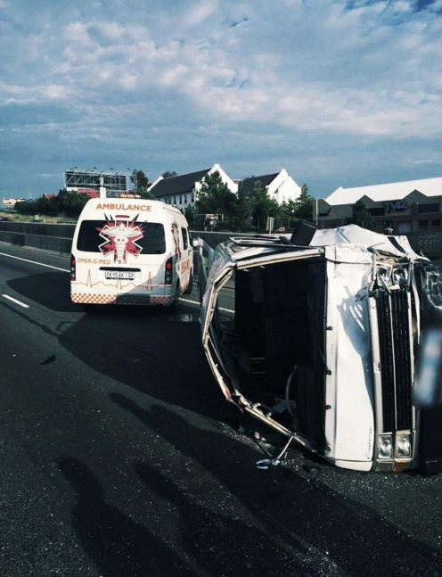 According to ER24, when paramedics and other emergency services arrived on scene they found a taxi lying on its side, at the side of the road while the car was parked in the slow lane.