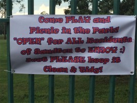 Charles is determined to not allow his father’s vision for the park to be undermined. He has made massive signs on which he has written: ‘Come play and picnic in the park. Open for all residents of Sandton to enjoy. Just please keep it clean and tidy’.