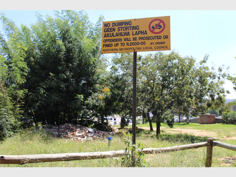 Builders, residents and contractors are urged not to dump waste or rubble in George Lea Park as it is detrimental to the prosperity of the park and its inhabitants.