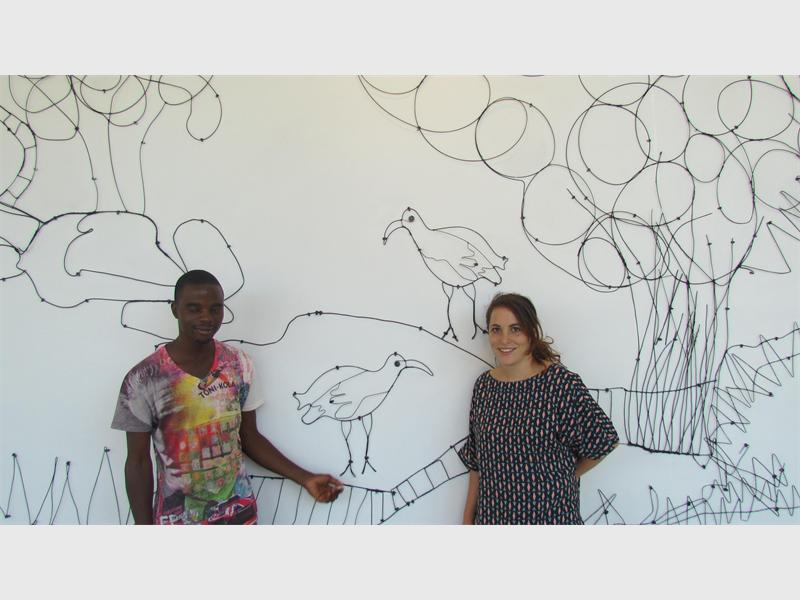 Elias Bwanya specialises in wire art and assisted in creating the mural. “It’s the largest project I have ever worked on, and it took us over a month to complete,” he said proudly.