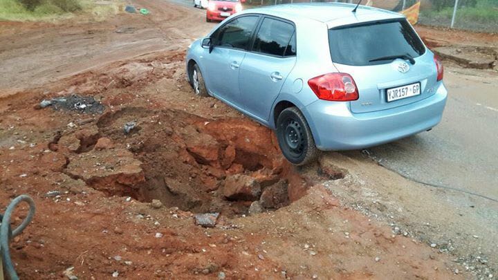 ✖Ballyclare just above St Audley collapsed. There seem to be a massive hole in road. 16:50:26 / 14•05•2016— johan willemse (@insulter1) May 14, 2016