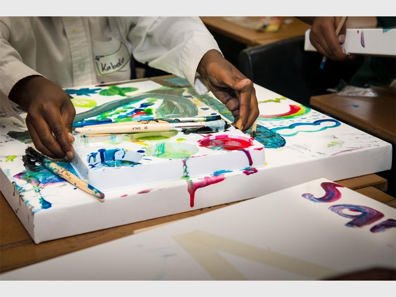 ALEXANDRA – Children from Rays of Hope's homework club let their juices flow as they paint on canvas.