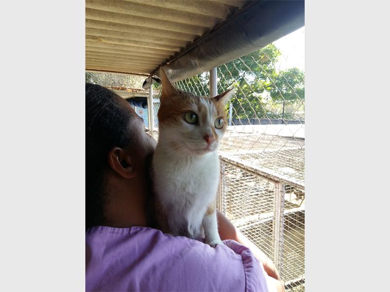• Pawdrey is a ginger, tabby and white domestic short-hair. She is two years old and was found as a stray and is extremely affectionate.