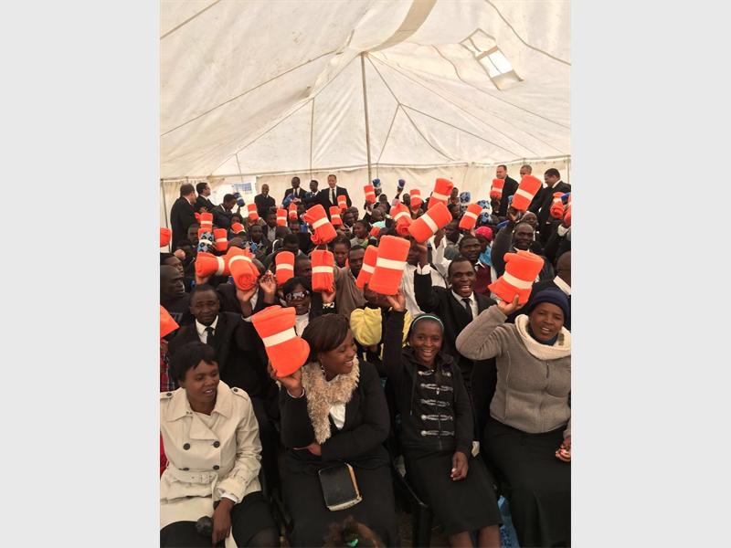 Church leader, David Gracey said, “On a cold and windy winter’s morning in June, about 120 members of the New Apostolic Church of the Olivienhoutsbosch congregation gathered in a tent that the members use as their [venue].”