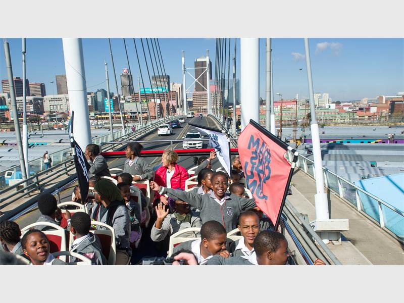 The event combined education and entertainment by kicking off the experience with a short tour of the city on the City Sightseeing Red Bus in Johannesburg, following which the pupils were able to learn about beatboxing and the art on display at the heritage site.