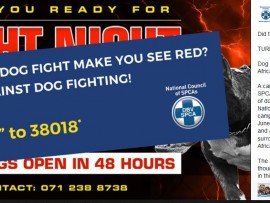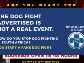 Michelle Salgate, spokesperson from the NSPCA said, “We confirm that the SPCA set up this advert to create awareness on dog fighting. More people need to talk about it and hear about it. This fighting happens all over and is a huge problem. Report dog fighting to Wendy Wilson 0119073590/91/92”