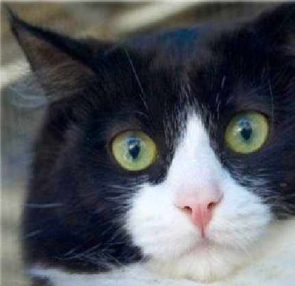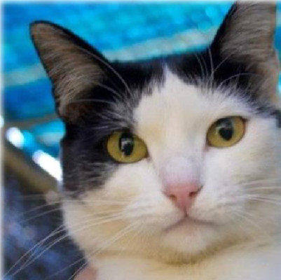 Lizzy is a one-year-old black/white domestic short-hair female.