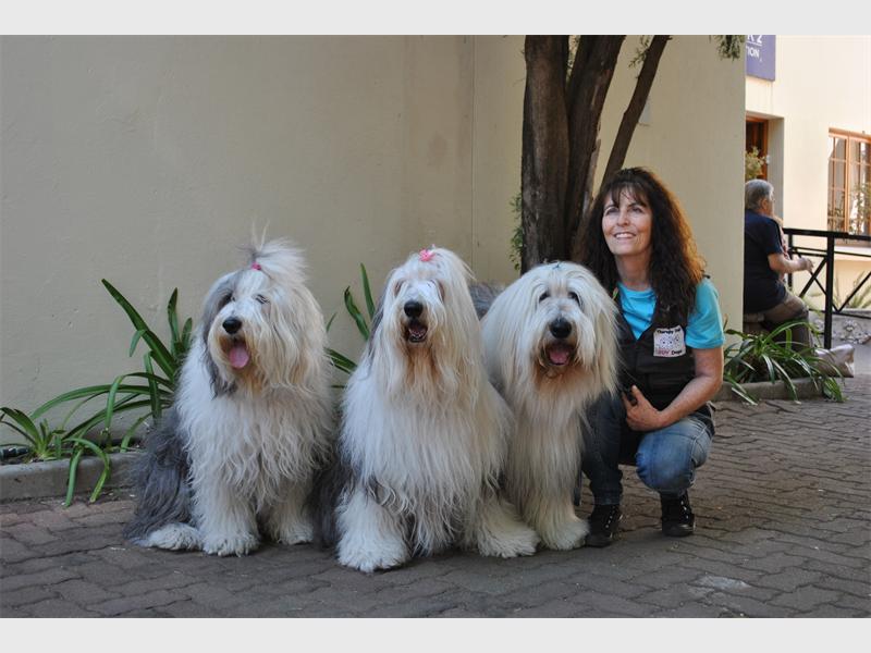 The dogs are old English sheepdog breeds and the name JOY, is an acronym for Jazmine, Oscar and Yola. They are nine, six and three years old, respectively.