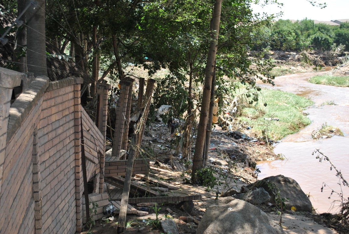Derik and Riekie Swanepoel’s boundary wall was almost entirely washed away when the water level rose about two to three metres.