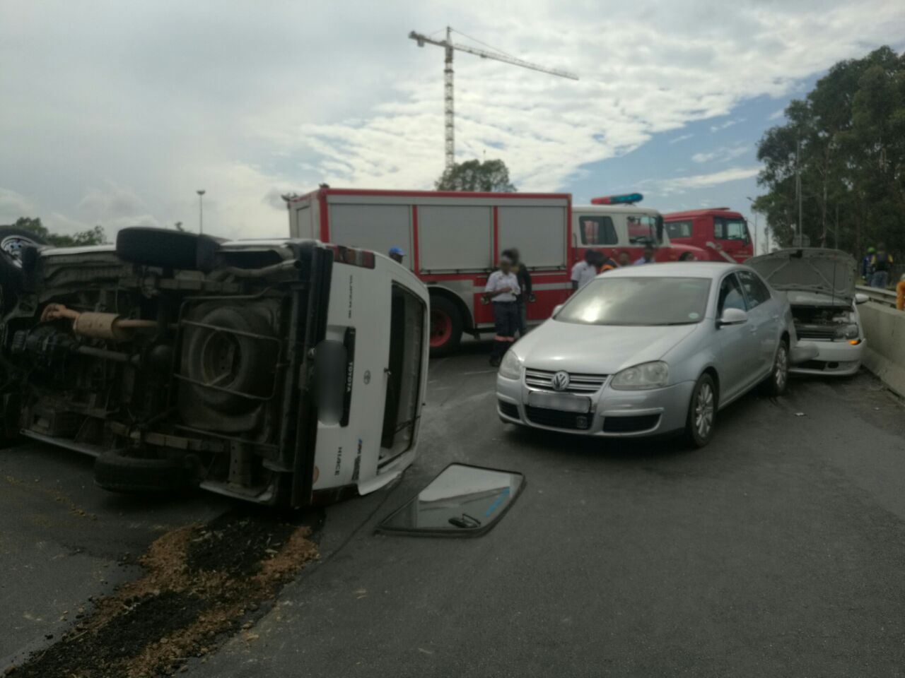 EMER-G-MED’s spokesperson Max Cohen said on arrival paramedics found that a taxi had rolled. A truck and six cars had also been involved in the collision, which left three of the cars and the taxi badly damaged. A total of 18 people sustained injuries ranging from minor to moderate. Most were found standing around the scene, while others were found lying across the roadway.