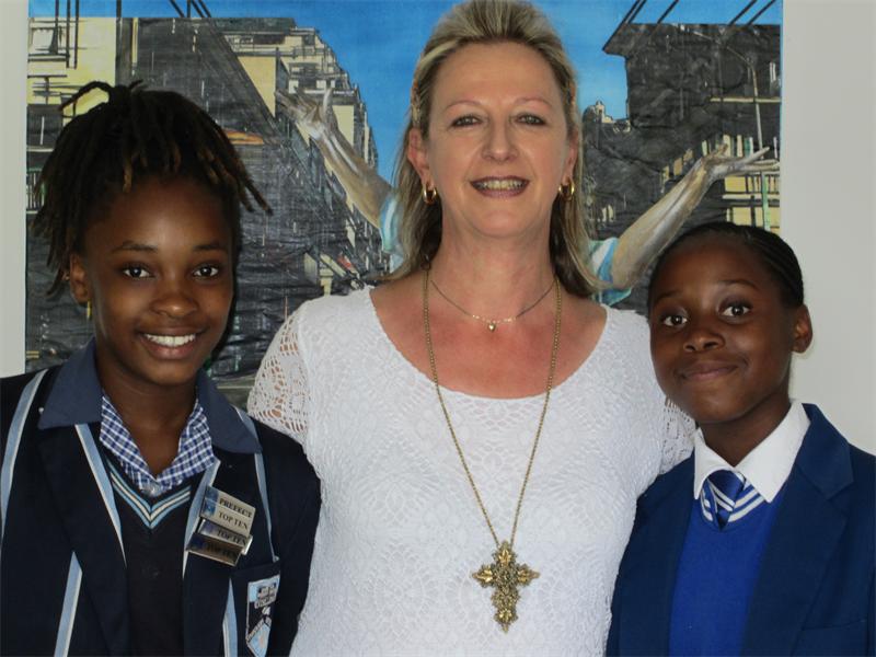 Nonhlanhla Tshabalala and Lerato Mongaula are welcomed to the Saints family by Ivanka Acquisto, head of St Stithians Girls' College.