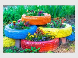 • A fresh coat of paint can transform your tyres and turn them into the perfect plant holder. You can choose to stack your plant holders on your patio or embed them in your garden. Remember to refrain from planting edible plants in old tyres.