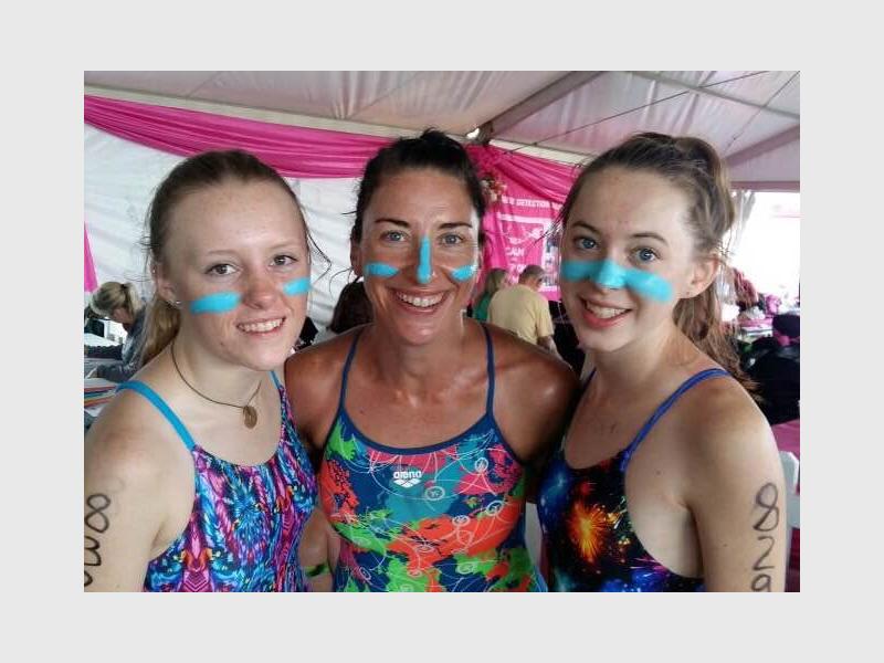 Amy van Druten, Hayley Swait and their coach Nadia Cooke all swam to raise money for the Mandeville Disabled swimming team based in Bez Valley, Johannesburg.