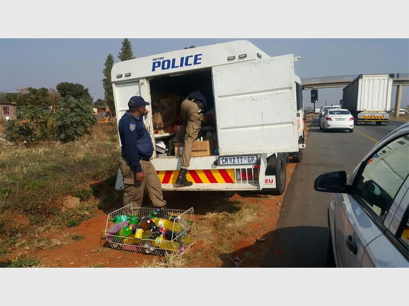Metro police and and members of the South African Police Service discovered goods valued at approximately R500 000 following alleged looting from factories in the Nancefield Industrial south of Joburg on the evening of 10 May.