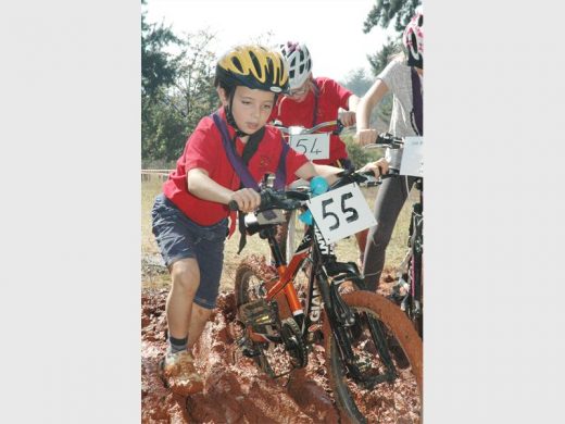 Enzo Ludwig of the 1st Bryanston Saturday Pack negotiates a mud pit during the Wally Kolher Enduro Cycle Race on 3 June.