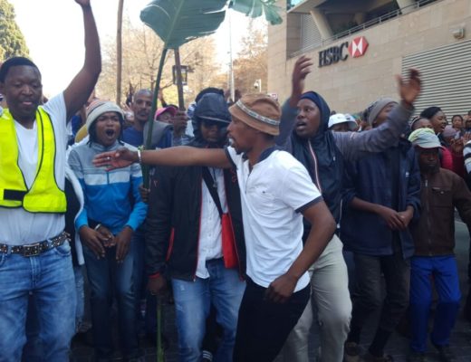 Members from by the Greater Local Mining Communities Business Forum took to the streets of Sandton this afternoon in a planned strike action.