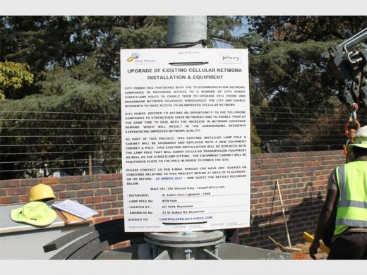 The spokesperson for City Power, Virgil James said they created awareness by consulting regional directors of the City of Joburg in their forums. He also said that ward councillors were engaged and registered mail was sent or direct contact was made with residents of the properties adjacent to the pole sites.