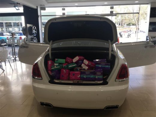 Throughout August, Rolls-Royce will be collecting sanitary towels at their Sandton showroom to donate to the Caring4Girls Foundation.