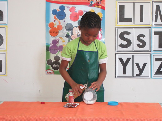 Esihle Nene showed the class how to make bubbles with baking soda and vinegar and Siyena Naicker demonstrated how primary colours could be used to make secondary colours. Cynthia Innes Grade 0 teacher said it was another successful Science Day.