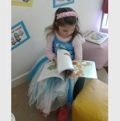 Sofia Ward dressed up as a Princess and read her book in the new library.