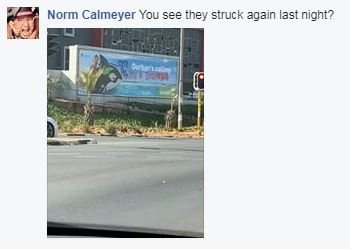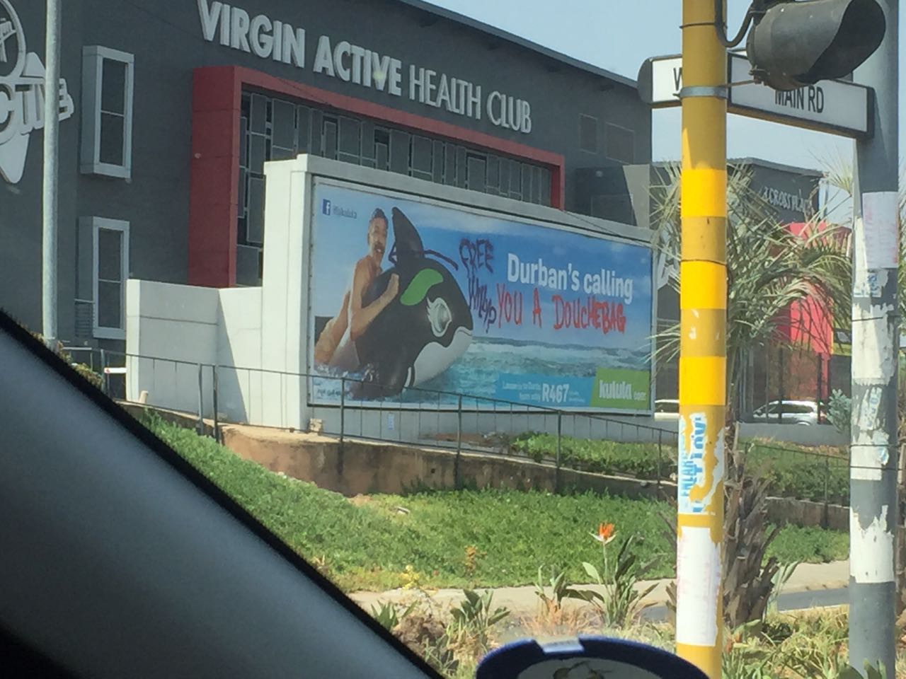 The message painted on the billboard states: ‘Durban’s calling you a douchebag.’