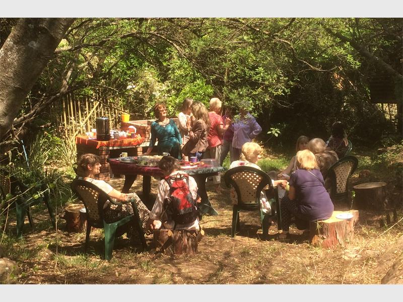 After the stimulating discussion, attendees can enjoy a cup of tea and chat under the trees at the venue in Bryanston.