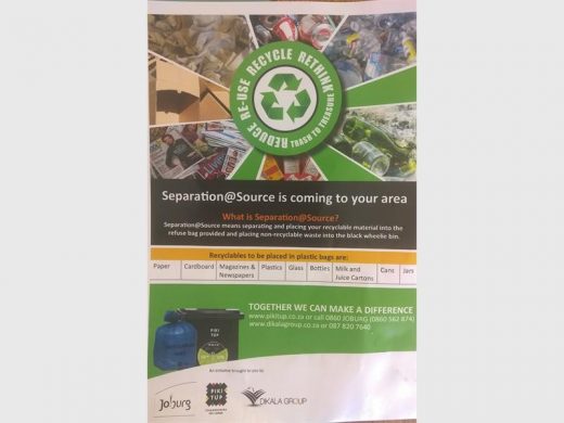 Pikitup has launched a separation at source project in partnership with Dikala Group to encourage recycling and reduce waste going to landfill sites across Joburg.