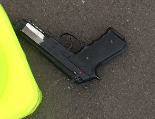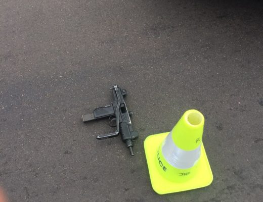 Sergeant Desmond Subramoney said, “On 7 March at about 1.30pm, three suspects were arrested and two firearms were found [one Uzi and one 9mm Parabellum] at the scene.”