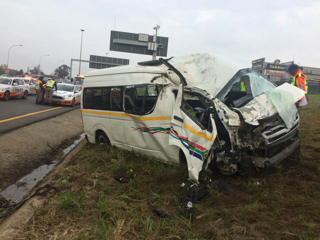 One person was killed and 15 people sustained injuries ranging from minor to moderate after the taxi they were travelling in lost control, in a single vehicle accident, on the M1 just after the Woodmead Drive off-ramp this morning, 18 April.