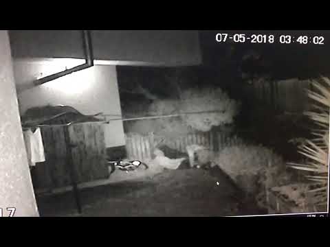 The video, dated 7 May, shows two suspects crawling across the lawn on all fours just before 4am.