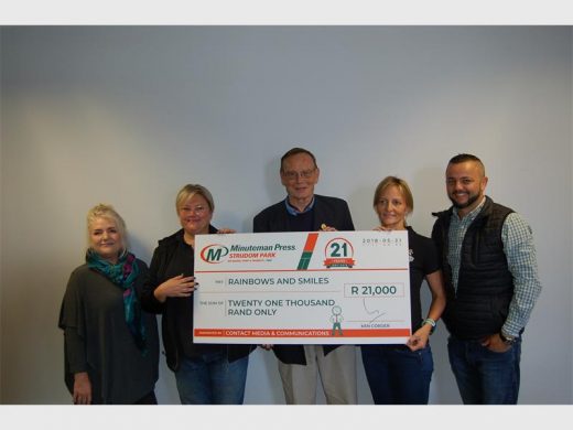 SANDTON – To celebrate its 21st anniversary, Minuteman Press recently donated R21 000 to the Rainbows and Smiles charity.
