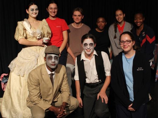 After the individual workshops with the boys’ and girls’ college, all learners gathered at the school’s amphitheatre to watch various performances including Hani the Legacy and Jittery Citizens as well as this year’s Fleur du Cap Best Actor, Craig Morris, who performed Blood Orange.