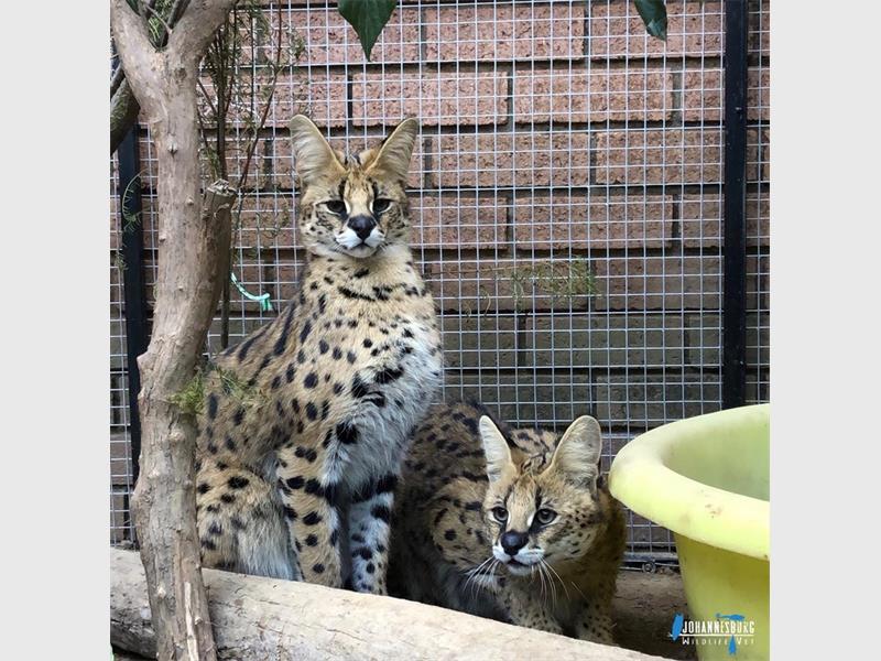 According to Nicci Wright, a wildlife rehabilitation specialist at Johannesburg Wildlife Veterinary Hospital in Glenferness, the servals were being kept illegally as pets. “We sedated them and both underwent a complete health check and we found that they were both in good health, although a little overweight.”