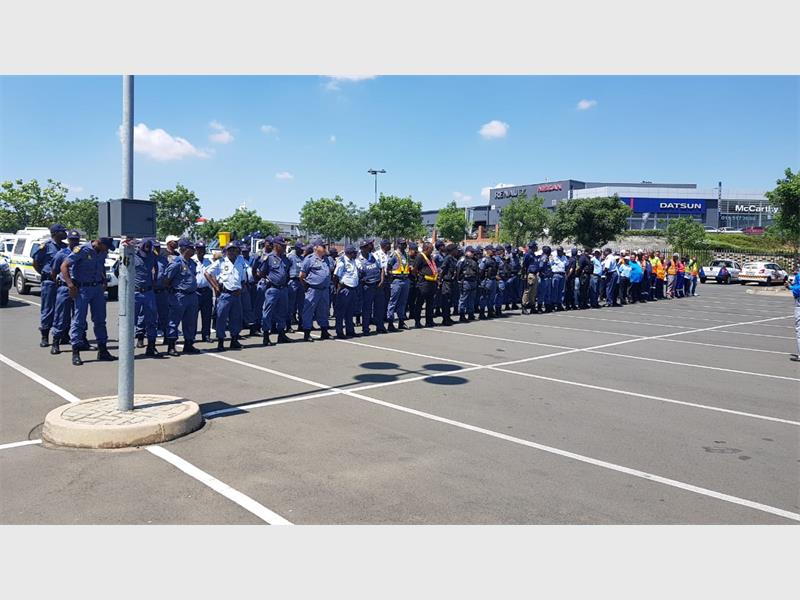 Various role players across the region recently held an on-duty parade for Operation Buya Mthetho in Woodmead Retail Park.