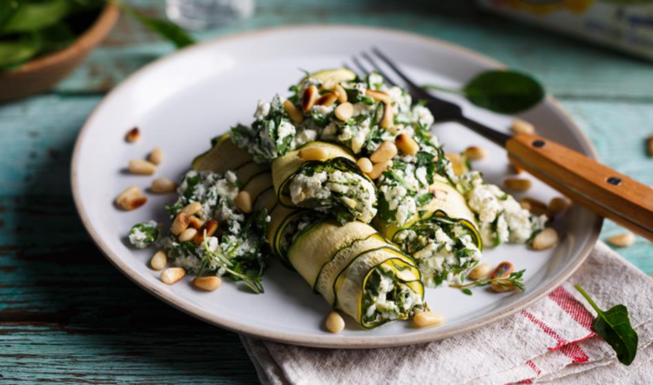 Courgette cannelloni with spinach and ricotta.