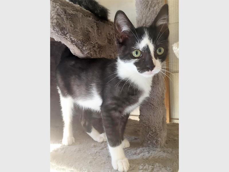Balto is a 10-week-old smokey grey and white domestic shorthair male. You can find him in kitten run 1. Photo:Supplied