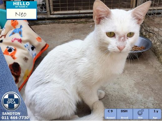 Neo is a one-year-old male white domestic shorthair. You can find him in cattery C 9. Photo: Supplied