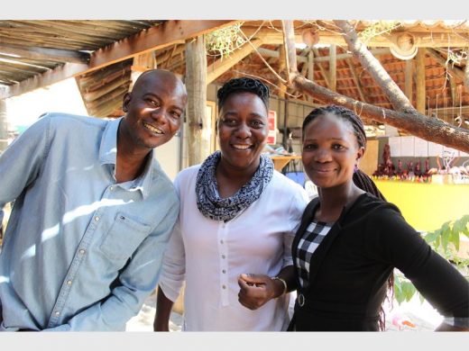 Emmanuel Mukwiro, Nomathemba Moyo and Hannah Mboga encourage more people to come to the market. Photo: Itumeleng Komana