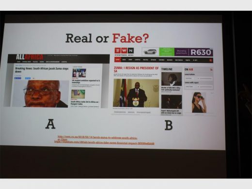 Pampalone included examples in her presentation where the audience had to guess which site was fake and which one was real. Photo: Itumeleng Komana