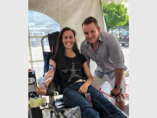 First-time blood donor Ilze Prinsloo and Gert van Zyl, who regularly organises blood drives in Bryanston. Photo: Supplied