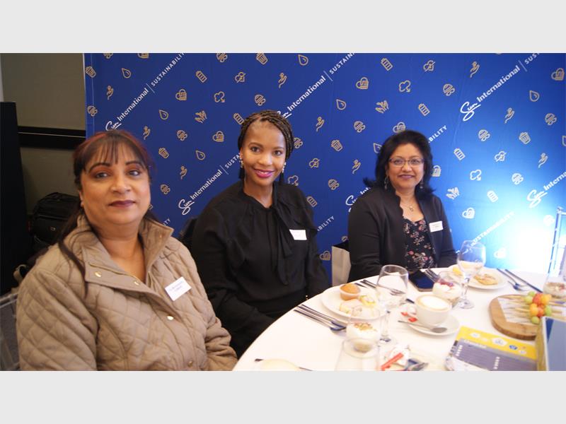 Salamina Mdhluli, Nastassja Nadioo and Sherona Ragoobeer are all smiles following the programme’s announcement. Photo: Chante’ Ho Hip
