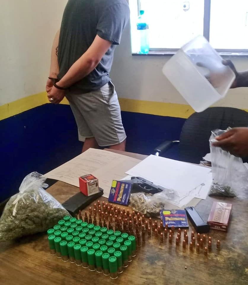 The man was then arrested for the possession of an illegal firearm, live ammunition and dagga. Photo: David Tembe Facebook