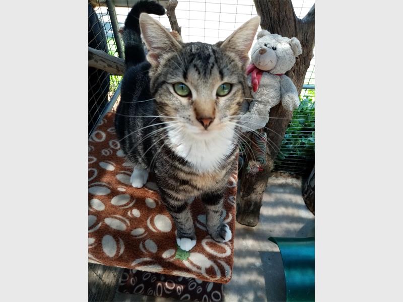 Forrest is a one-year-old female tabby and white domestic shorthair. Find her in cattery 2. Photo: Supplied