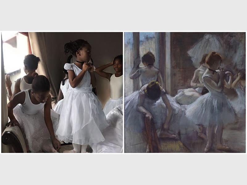 Mukona Nangammbi submitted her version of Edgar Degas’ Dancers at Rest.”When I first saw the original painting, it took my mind to this place where girls can feel elegant and beautiful, and express it through the art of dance. Being under lockdown, I had no access to art materials and used my family as actors to recreate the scene,” said Mukona.