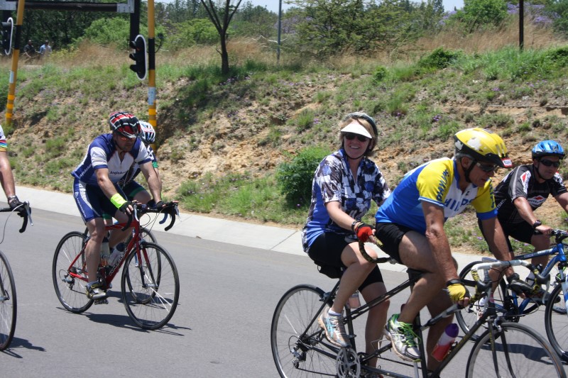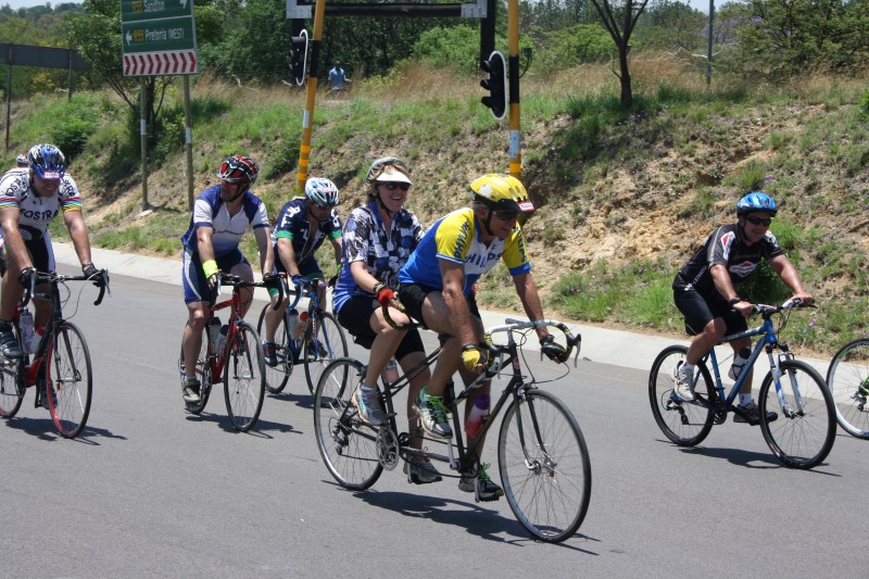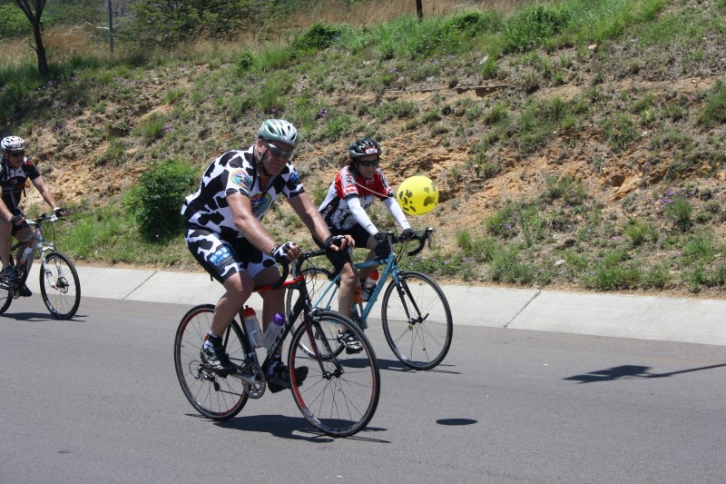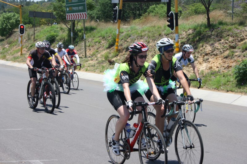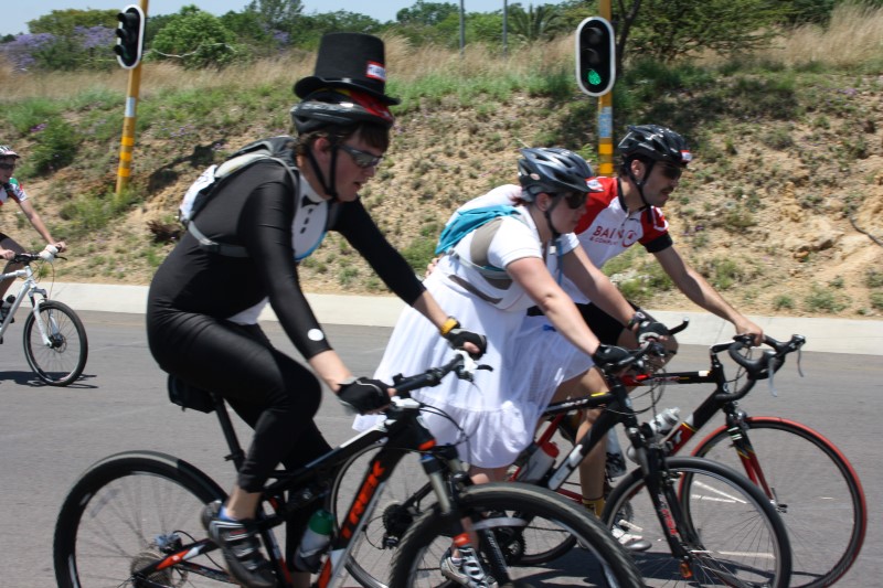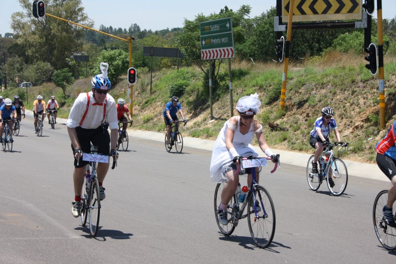 The brides and grooms to be dressed in cycle-friendly versions of bridal wear and supporters at the intersection of Main Road and the R55 in Kyalami hummed the tune, ‘Here Comes the Bride’ as they cycled past on the home stretch.