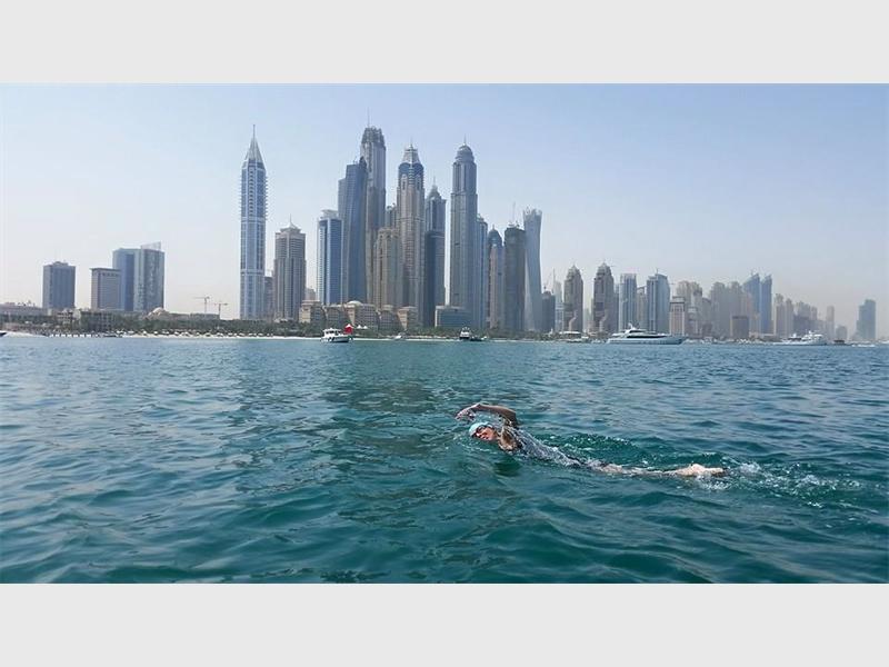 PAULSHOF – Local resident and musician Kieran Ballard-Tremeer successfully completed the 14.5km swim around Palm Jumeirah Island in Dubai recently in a time of 04:25:00.