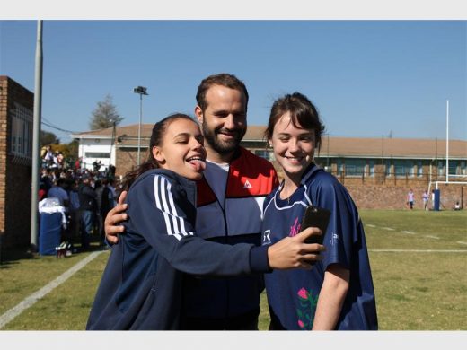 Emma Lucas in Grade 11, who plays for the girls’ rugby team at the school, who got a selfie with Michalak said, “It’s such an honour to have them at our school. I just wanted to meet the players because we follow French rugby. It’s fun to know Frédéric is such a down to earth player.”
