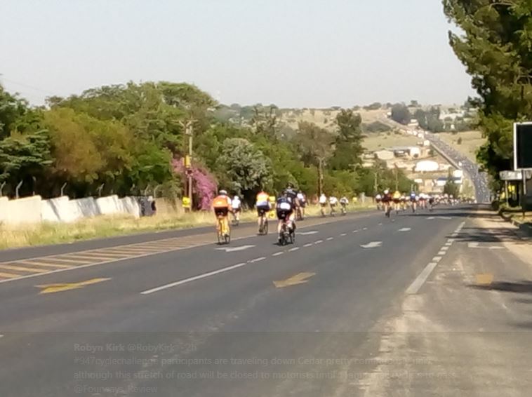 People from various organisations have come out in their hundreds for the #947CycleChallenge still to tackle about 52km more from Jan Smuts Avenue and Empire Road @RK_Gazette pic.twitter.com/RSYXpGWybg