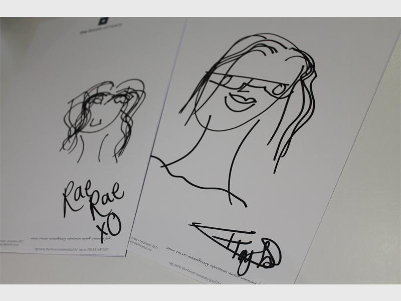 PHOTO 12 PICASSO MOMENT: Local performance artist Anthea Moys instructed each Instawalker to close their eyes and draw a self portrait without looking at the paper. These were the City Buzz reporter’s final product.